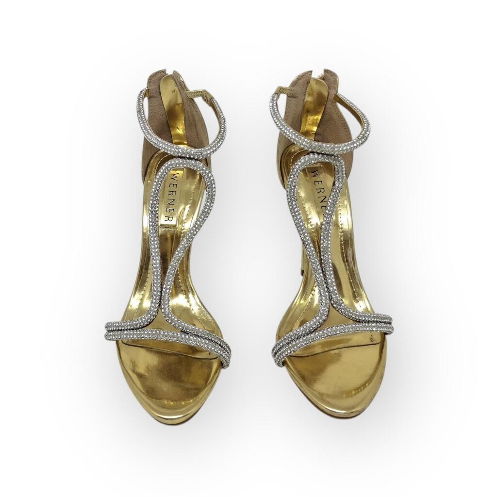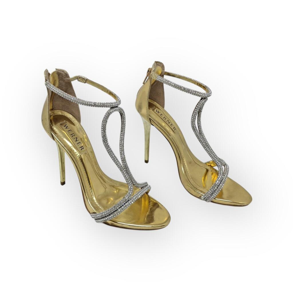 A Sandália Feminina da WERNER é a definição de luxo e presença. Confeccionada em couro legítimo com acabamento dourado espelhado, ela exala sofisticação. As tiras finas revestidas com strass trazem um brilho delicado e elegante, contornando o pé com charme e sensualidade.