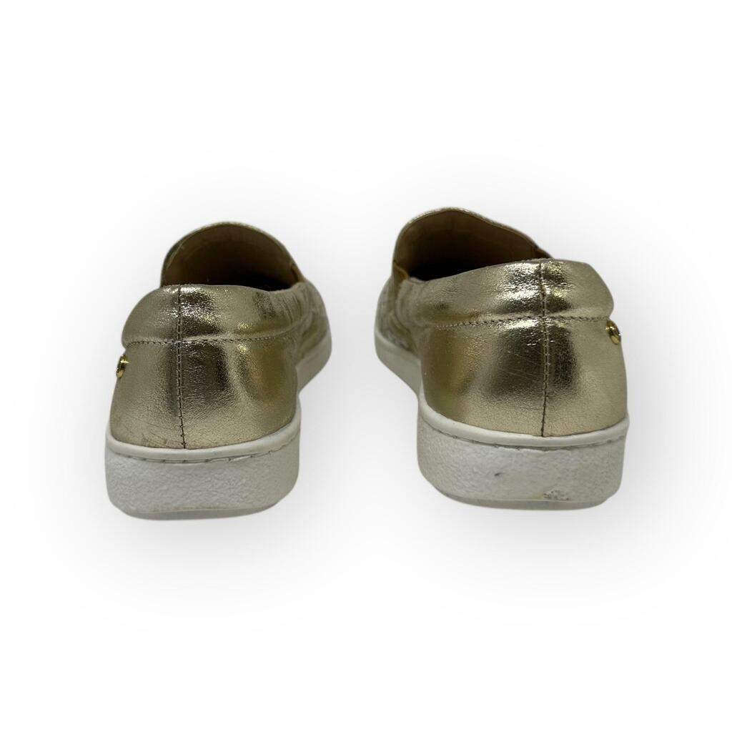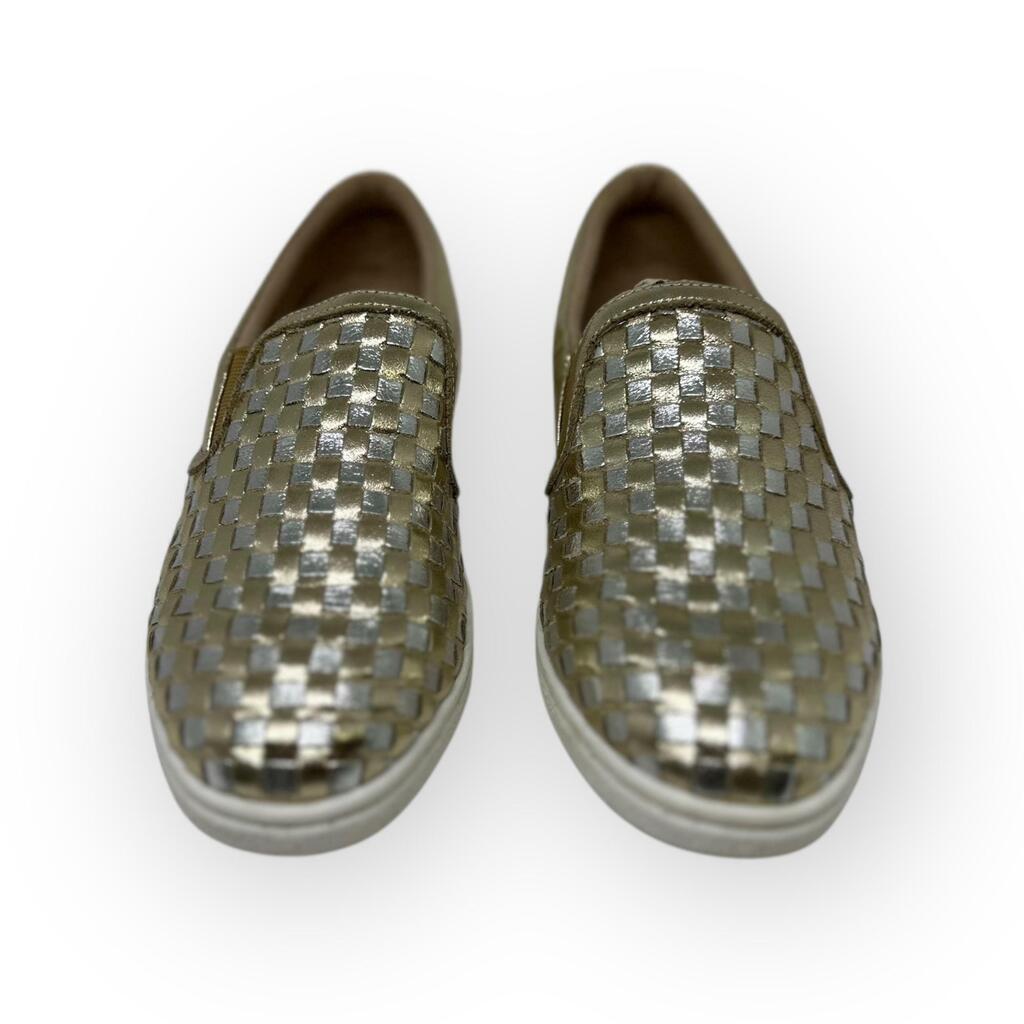 O Tênis Slip On Dumond Trançado é perfeito para quem busca um visual prático, elegante e com toque fashion. Confeccionado em couro legítimo, o modelo apresenta acabamento trançado metalizado com nuances de ouro e prata, garantindo brilho na medida certa e destaque imediato ao look.